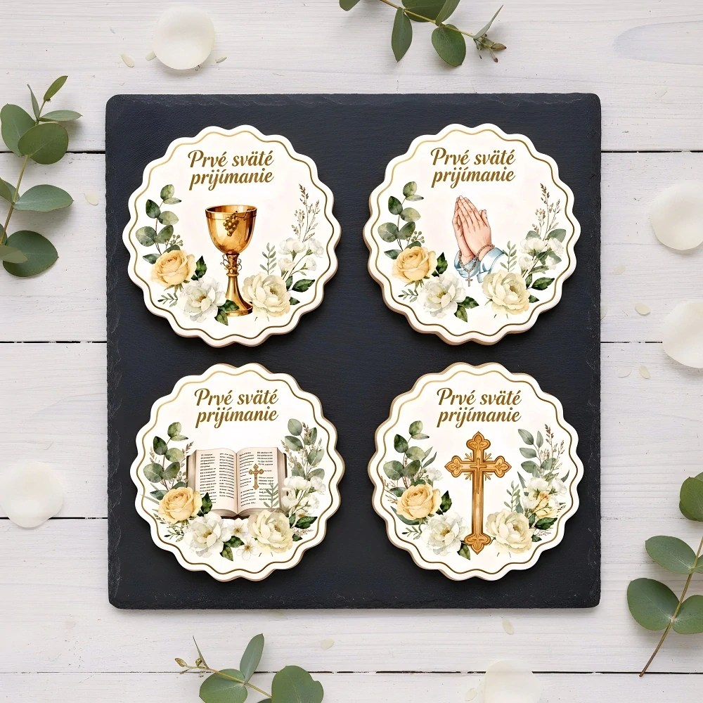 - Krásne cirkevné motívy. Kalichy, hostie, kríže, holubice či elegantné ornamenty.